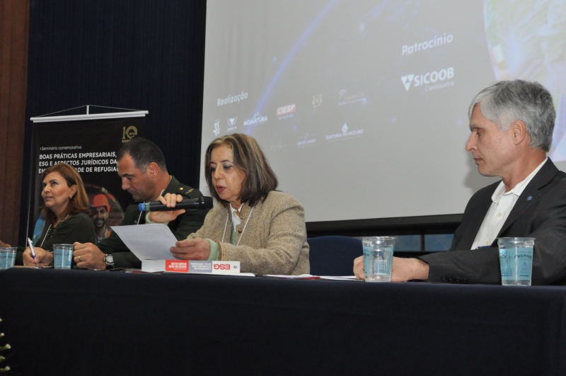 A Líder do Comitê de Inserção de Refugiados e Migrantes do Grupo Mulheres do Brasil, Eliane Franco Figueiredo, tratou da admissão de refugiados no mercado de trabalho. O projeto criado pelo Comitê envolve a capacitação, a inserção no mercado de trabalho, o empreendedorismo e geração de renda e a captação de recursos.