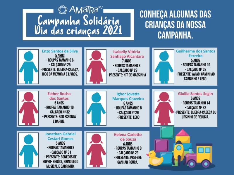 Com a ação solidária, a AMATRA XV atenderá crianças da Associação Cultural Educacional Social e Assistencial Capuava – ACESA (Valinhos - SP) e da Fraternidade Casa de Assis (São José dos Campos - SP).