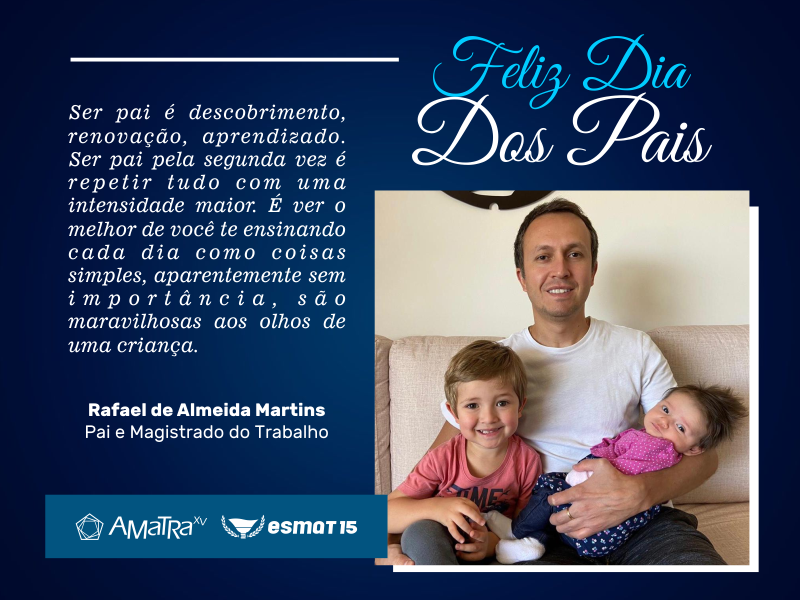 Agradeço à AMATRA XV, ao ensejo do Dia dos Pais, por esta oportunidade de compartilhar a alegria, o orgulho e a felicidade de ser pai de quatro filhos (que já me deram quatro netos), Manoel Inácio, Ulisses, Rachel e Vinícius.