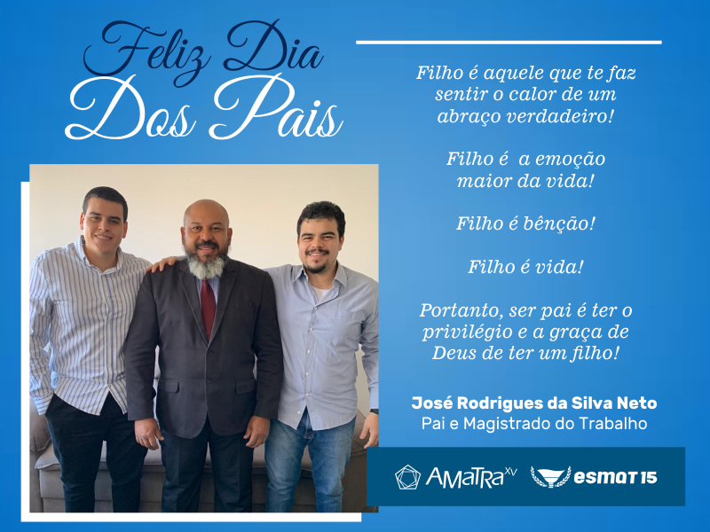 A AMATRA XV e ESMAT 15 homenageiam todos os pais, na pessoa de seus Associados: Rafael de Almeida Martins, José Rodrigues da Silva Neto e Orlando Taveira.