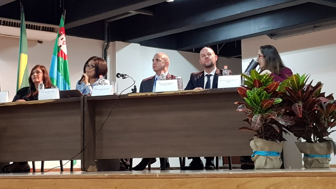 A Magistrada participou da 3ª Mesa de debates do evento, denominada: “Relações de trabalho na democracia brasileira”, juntamente com o Mediador, Professor Fausto Luis Alves, o Professor, Doutor Paulo Eduardo Vieira Oliveira, Juiz do Trabalho da 2ª Região, a Professora Giovana Labigalini Martins, a Professora Rebeca Makowski, coordenadora do curso de direto, e a aluna Silmara.