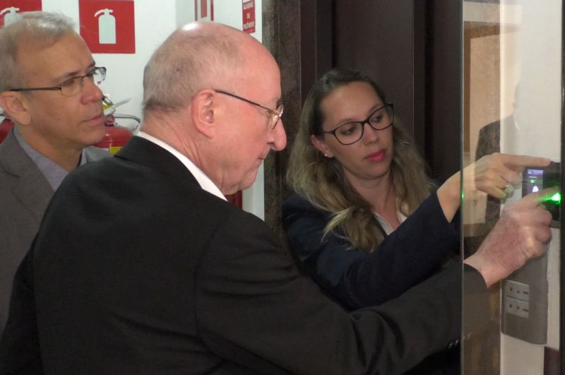a) Instalação de controle de acesso biométrico: tornando o ingresso na sede mais rápido, prático e seguro.