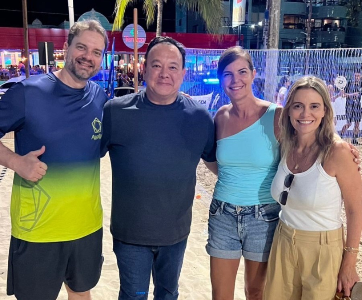 César Basile competiu no beach tênis misto, ao lado de Marcia Miura (TRT ES).