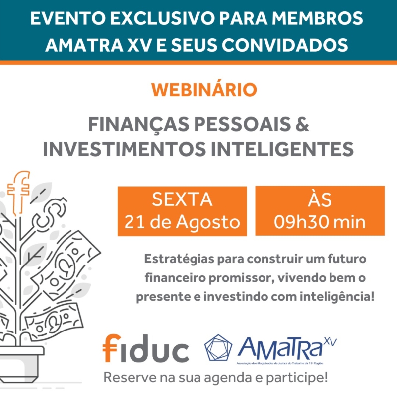 AMATRA XV, em parceria com a FIDUC, promove o webinário: Finanças Pessoais & Investimentos Inteligentes
