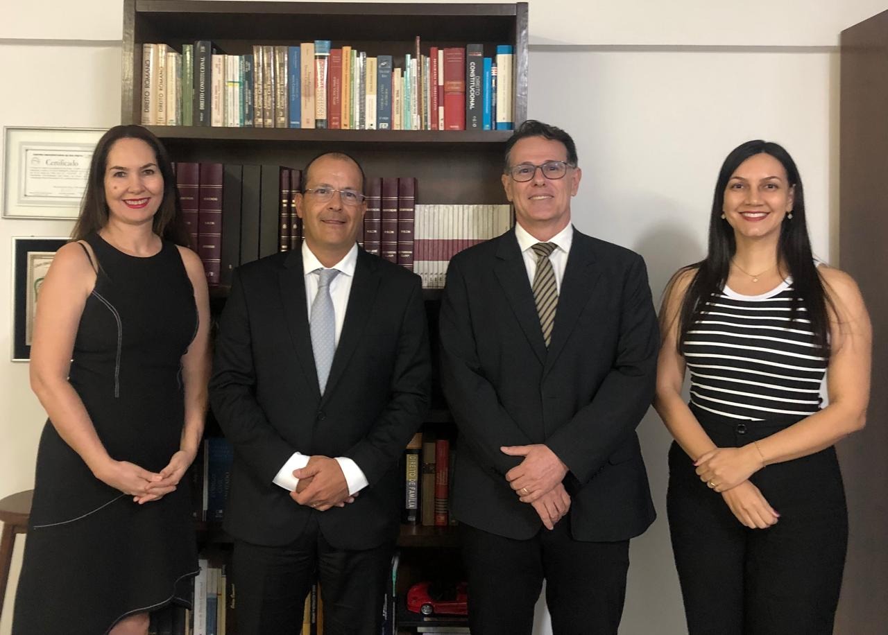 Foto: Posam: o Juiz Alexandre Garcia Muller, o Juiz Paulo Roberto Zaidan Maluf e as servidoras Simone Feitosa Canata (TRT-15) e Lívia Cristina dos Santos Agreli (TJSP).