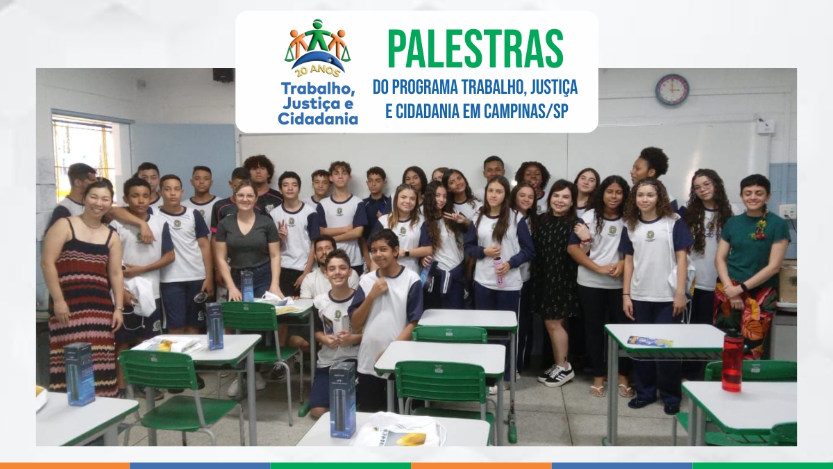 No dia 05/09, a Coordenadoria Regional do Programa Trabalho, Justiça e Cidadania, no âmbito da AMATRA XV, promoveu uma palestra sobre "Sustentabilidade e Trabalho Decente" para os alunos da Escola Municipal de Ensino Fundamental Virgínia Mendes Antunes de Vasconcellos, em Campinas (SP).