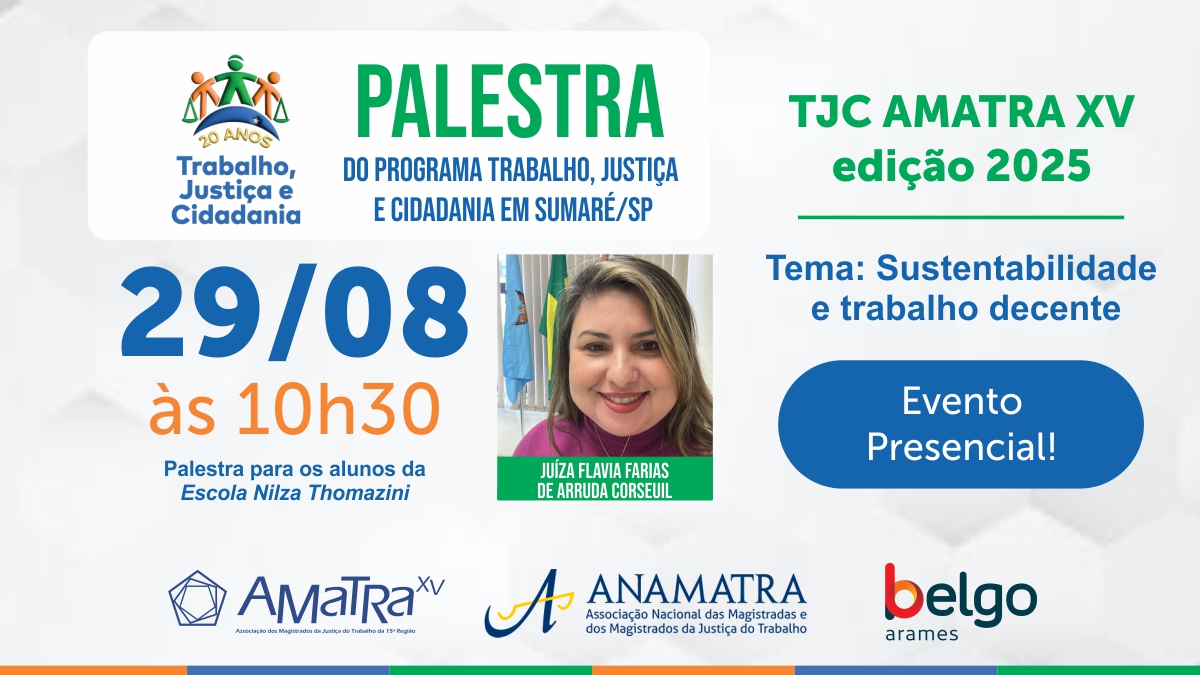 Neste momento, torna-se ainda mais essencial o diálogo permanente com a direção do Tribunal Regional do Trabalho da 15ª Região, na construção — sempre que possível de forma conjunta — de soluções que atendam às necessidades da magistratura e da sociedade. Queremos uma Associação atuante, respeitada e parceira, capaz de contribuir de maneira efetiva para o fortalecimento da Justiça do Trabalho.