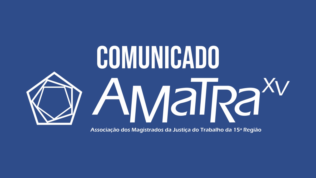 Com a renúncia da Regina, passo a exercer a função de presidente da nossa AMATRA XV. Expresso a mais sincera gratidão à Regina pela dedicação e pelo trabalho em prol da nossa Associação.