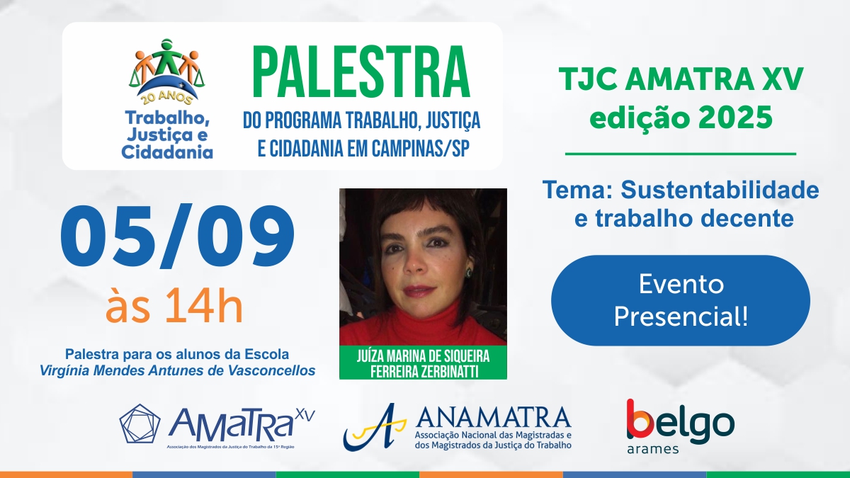 Conto com a colaboração e o engajamento de cada associado e cada associada para manter viva a força da AMATRA XV. Unidos, seguiremos firmes na defesa da nossa carreira, dos valores da magistratura e da relevância social da Justiça do Trabalho.