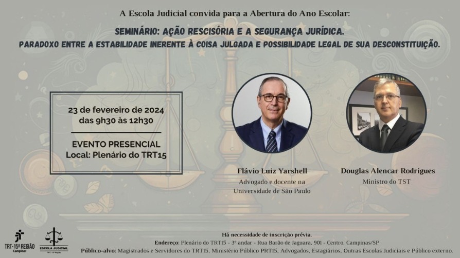 Pela 15ª também estiveram presentes, os Desembargadores Samuel Hugo Lima (Presidente do TRT-15), José Otávio de Souza Ferreira (Vice-Presidente Administrativo) e Rita de Cássia Penkal Bernardino de Souza (Corregedora Regional), além dos Juízes Auxiliares Daniela Macia Ferraz Giannini e Carlos Eduardo Oliveira Dias (Ex-Conselheiro do CNJ). Ainda compareceram os Juízes Carlos Abener de Oliveira Rodrigues Filho (Auxiliar da Corregedoria Geral da Justiça do Trabalho) e Saulo Tarcísio de Carvalho Fontes (Auxiliar da Vice-Presidência e da Corregedoria do TRT-16), Ministros de Tribunais Superiores, Presidentes de Tribunais, líderes associativos e magistrados de diversos Estados do País.