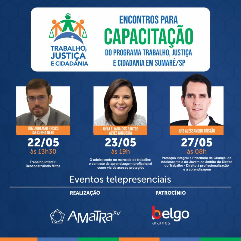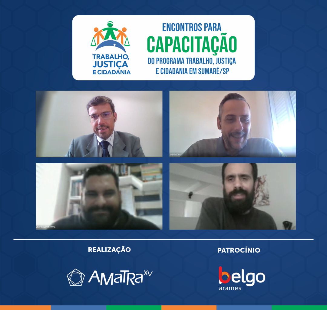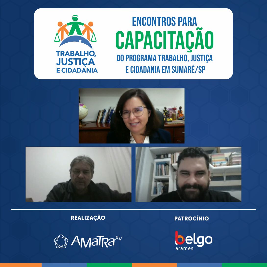 Na última terça-feira, 23/05, aconteceu o segundo Encontro para Capacitação dos Professores da rede pública de ensino de Sumaré/SP. A atividade, que ocorreu de maneira telepresencial, está sendo promovida pelo Programa “Trabalho, Justiça e Cidadania” – TJC, no âmbito da AMATRA XV, com o apoio da indústria Belgo Arames.
