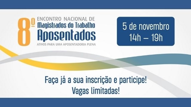 Encontro Nacional dos Magistrados do Trabalho Aposentados: inscrições prorrogadas até 04 de novembro