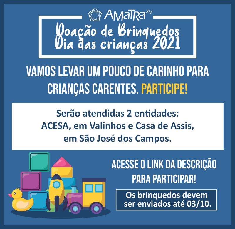 As doações podem ser feitas até o dia 3/10 (domingo).
